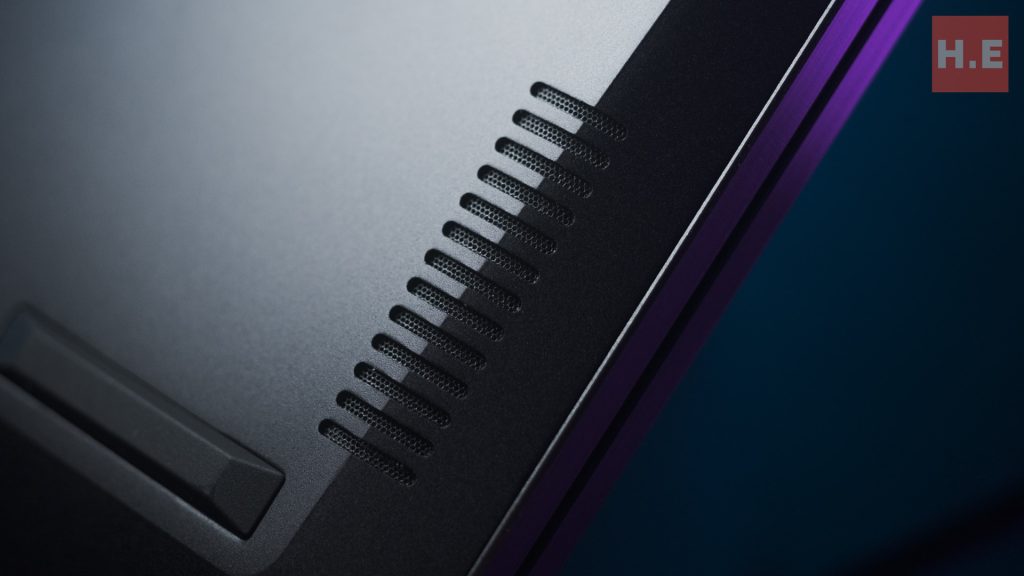 The sound itself is delivered via a pair of downward-firing speakers located on the underside of the chassis. While this placement can sometimes lead to slightly muffled audio if the laptop is placed on a very soft surface (like a bed or thick carpet), on a hard surface like a desk here in our office, it allows the sound to reflect, which can help create a fuller perceived sound profile. We expect this setup, combined with the DTS:X processing, should provide a noticeably better audio experience than basic, non-enhanced laptop speakers.