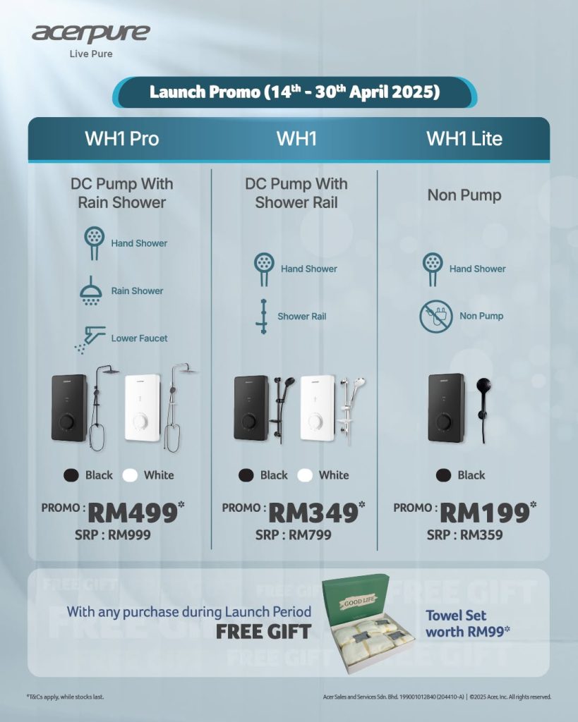 The Acerpure AQUA WH1 series is priced starting from RM359. Customers can take advantage of pre-order promotions, with prices starting from RM199, available at the Acer eStore and the Acerpure official store on Shopee until April 30, 2025.