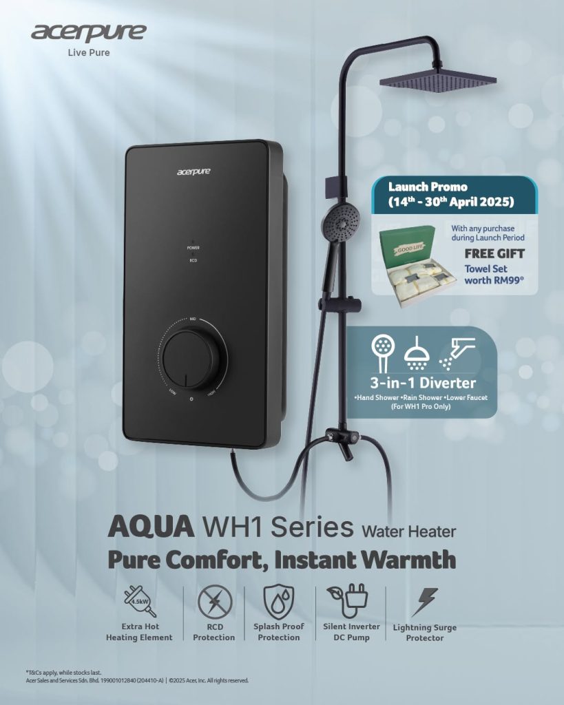 - Acer Malaysia introduces the Acerpure AQUA WH1 water heater series, focusing on safety and efficiency.