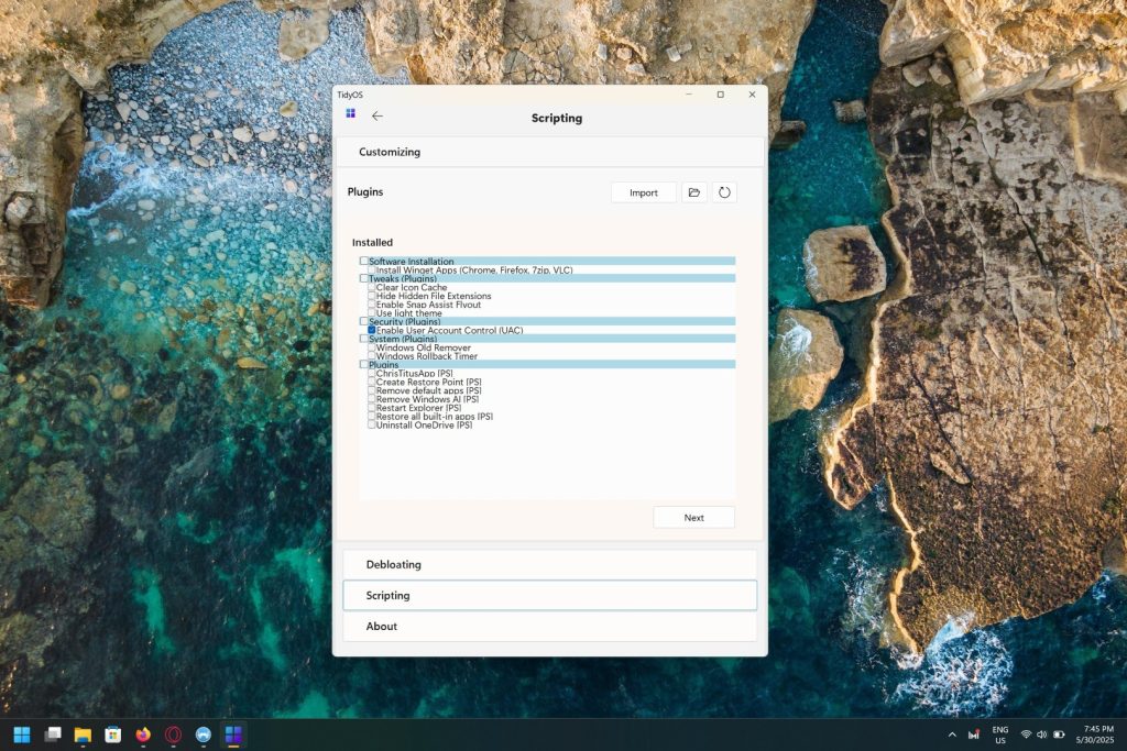 TidyOS goes beyond just removing unwanted elements; it also provides a convenient way to enhance your Windows 11 experience through automated scripts. This feature allows you to: