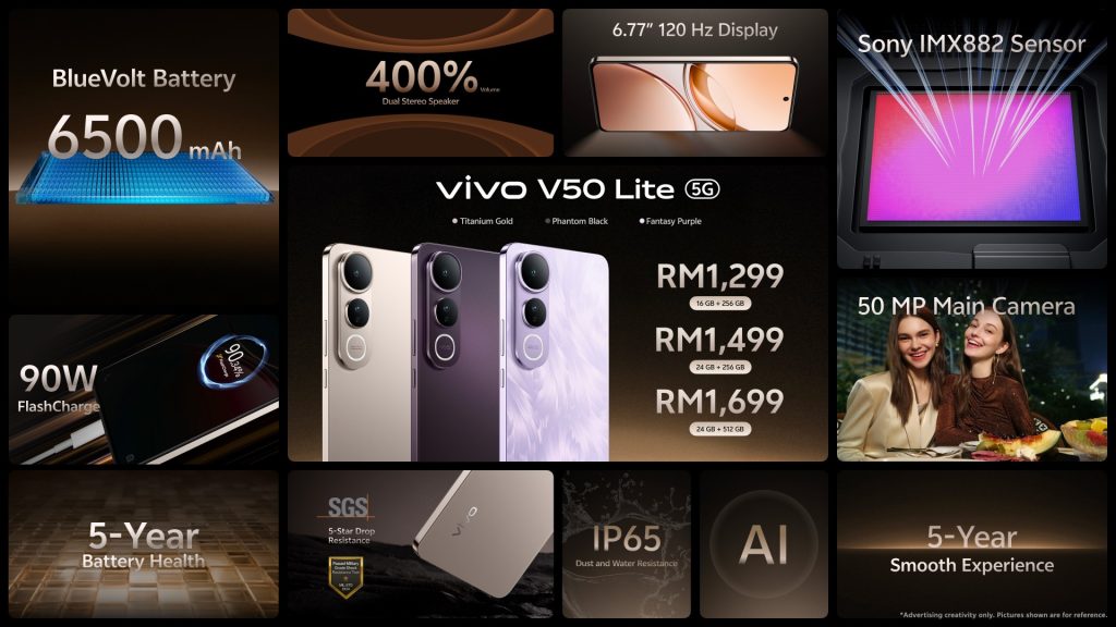 The vivo V50 Lite 5G is now available for purchase in Malaysia starting from RM1,299 at all authorized vivo retailers.
